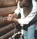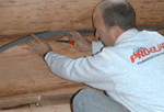 For example, 1/2” backer rod should be used if your finished chinking application it to be approximately 1" wide (for a 6" thick round log). Place the rod in the joint. Be sure the edges are flush with the log surface.